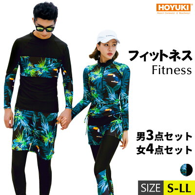 フィットネス水着 水着 ペア カップル ウェットスーツ リーフ柄 水着 体型カバー レディース メンズ お揃い セットアップ ラッシュガード 長袖 競泳水着 練習用 大きいサイズ フィットネス水着 トップス ショートパンツ ハーフパンツ レギンスパンツ UVカット